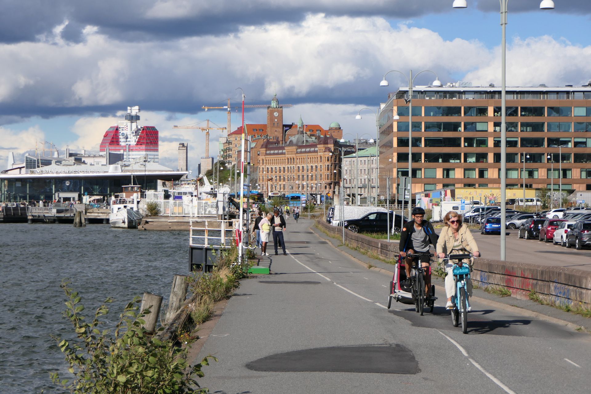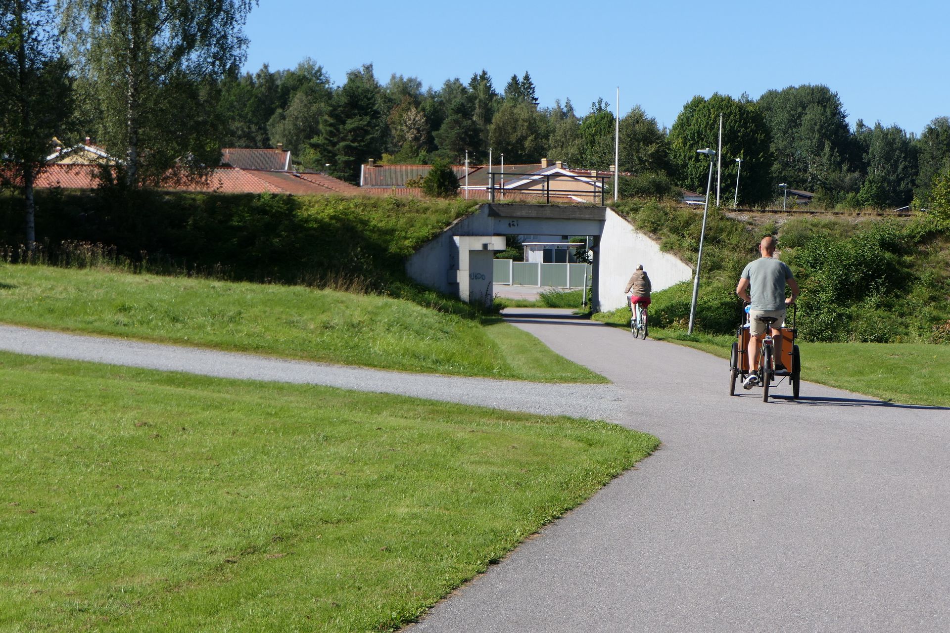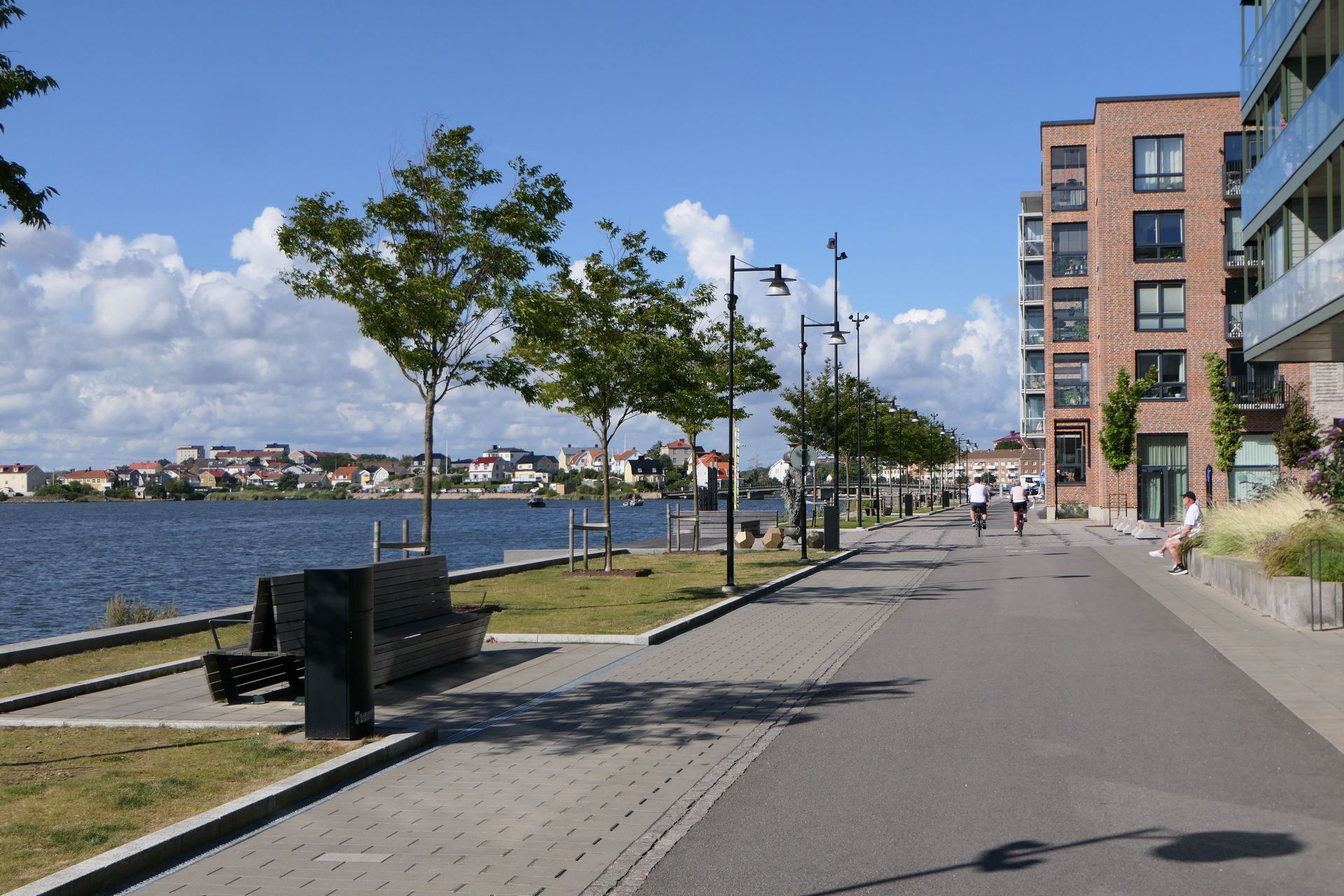 Na przedmieściach też dba się o wygodną infrastrukturę rowerową. W Szwedzkich miastach, za wyjątkiem ścisłych centrów, rzadko spotyka się chodniki z płyty lub kostki. Głównie są to asfaltowe ciągi pieszo rowerowe. Karlskrona.