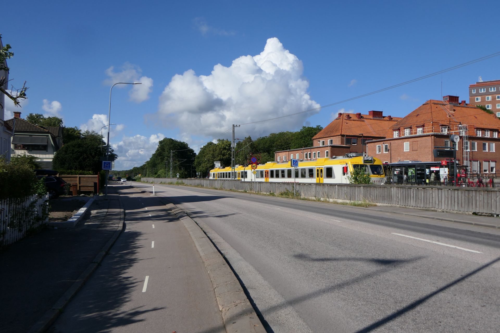 Symboliczna scenka – na jednym zdjęciu spotkały się droga dla rowerów, droga samochodowa, lokalna kolej i autobusowa komunikacja miejska. Szwedzi stawiają na multimedialność w transporcie. Karlskrona.